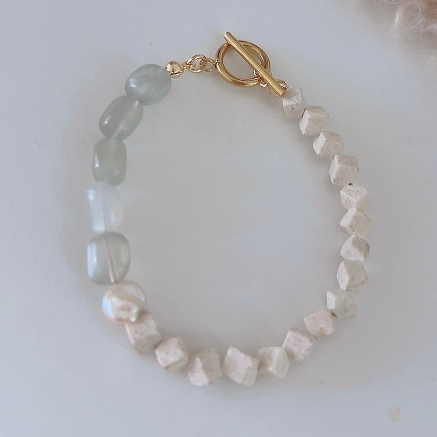 グレームーンストーン×リバーストーン ブレスレット