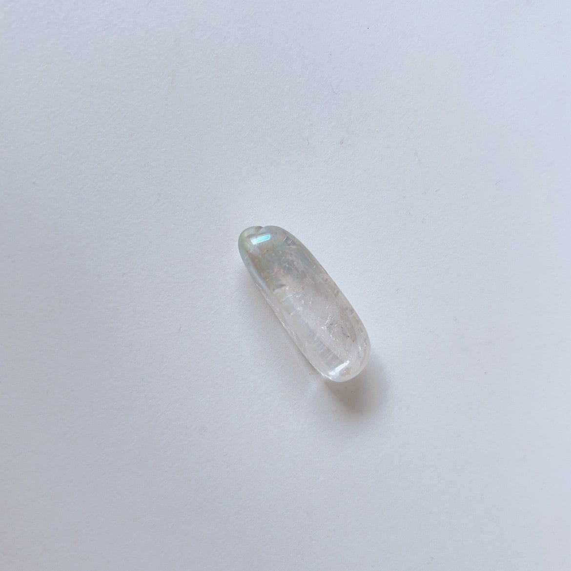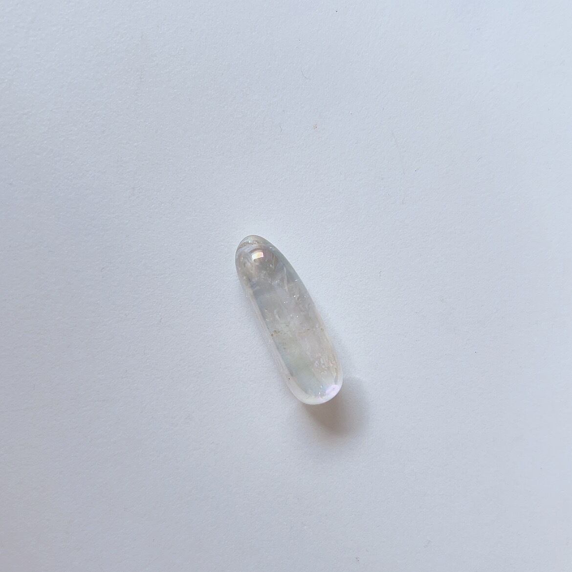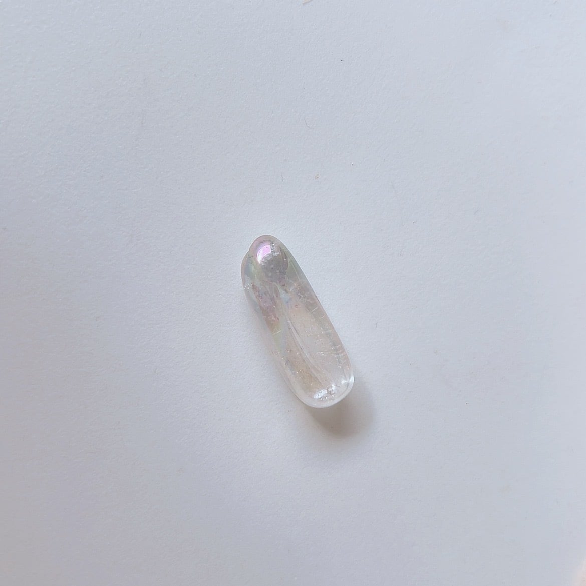 エンジェルオーラクォーツは、シャボン玉のような虹色の光沢で、見る角度によって色が変わって見えるとっても可愛らしい石です。