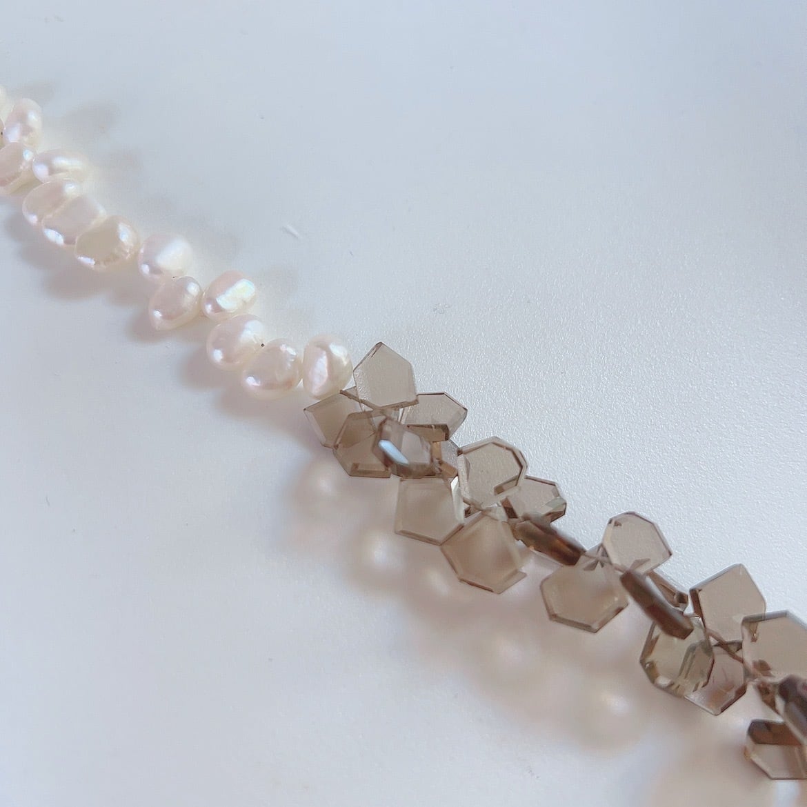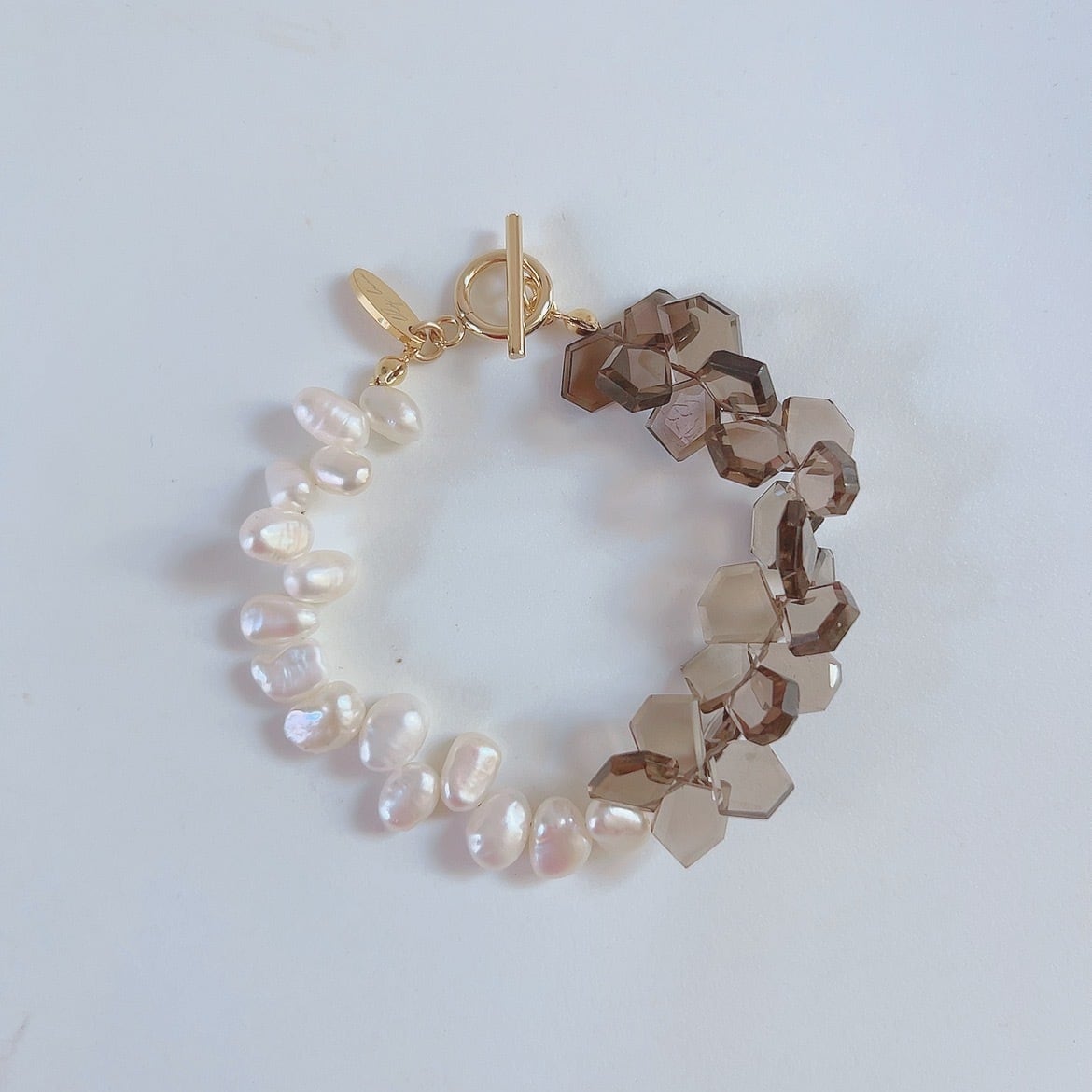 スモーキークォーツとパールが織りなすこのブレスレットは、自分らしさを表現する素敵なお守りとなりそうです。