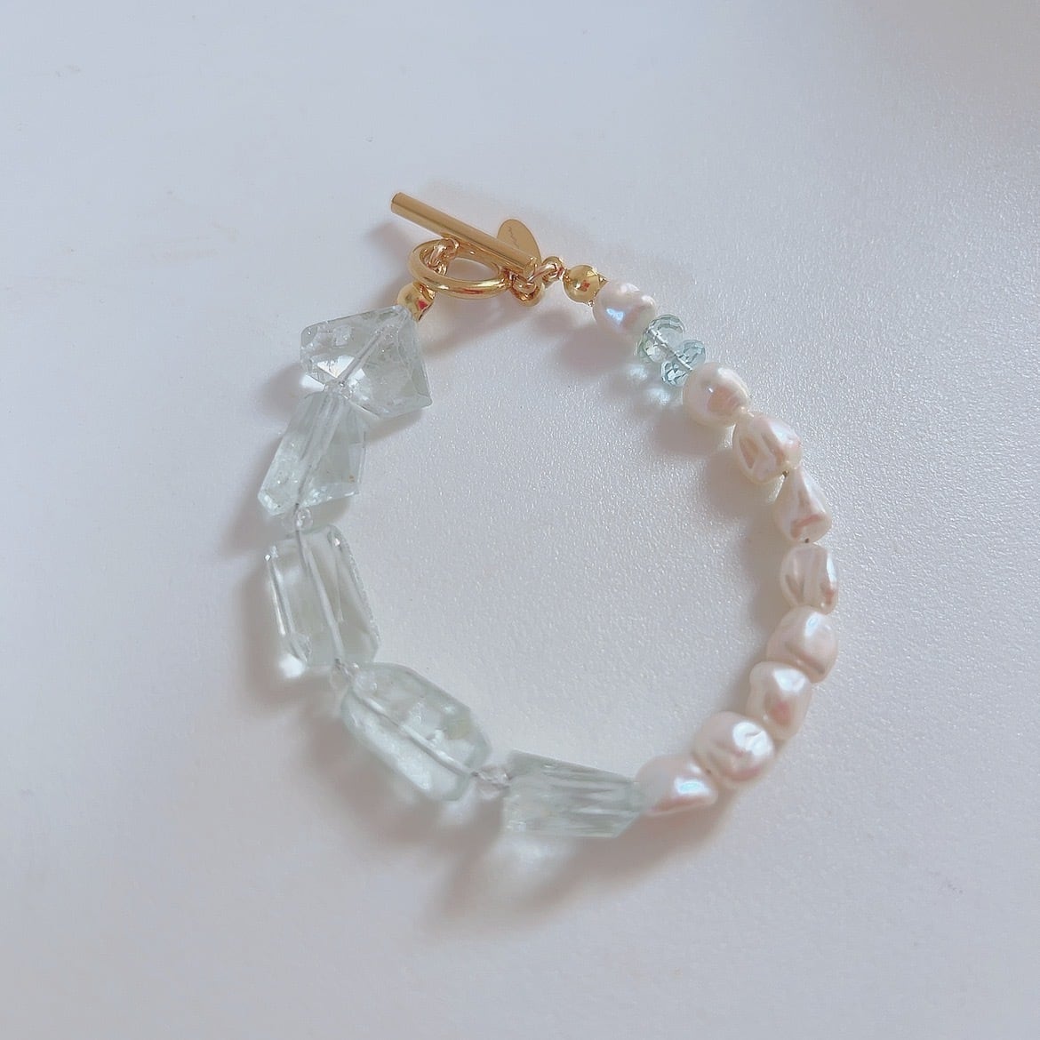 アクアマリン×パール ブレスレット