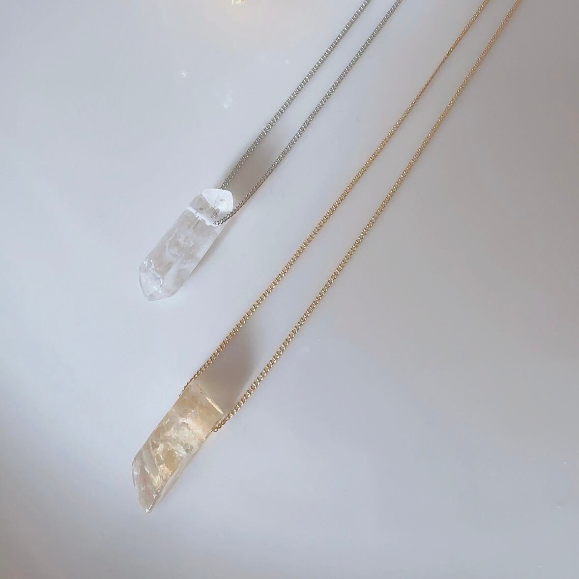 クリスタルとシトリンのネックレスです。