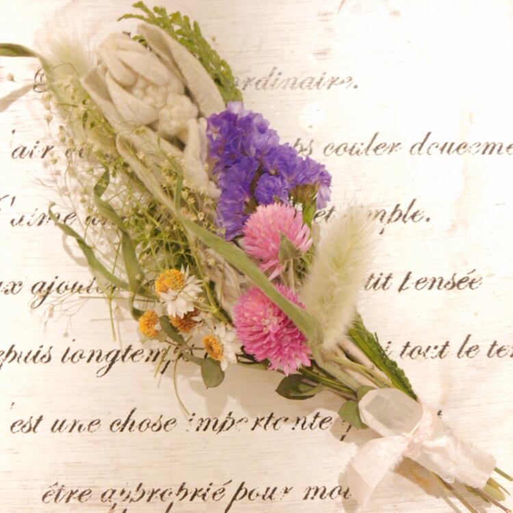 お部屋に飾るだけで場を清めエネルギーをクリアにしてくれるナチュラルで可愛らしいドライブーケです。
