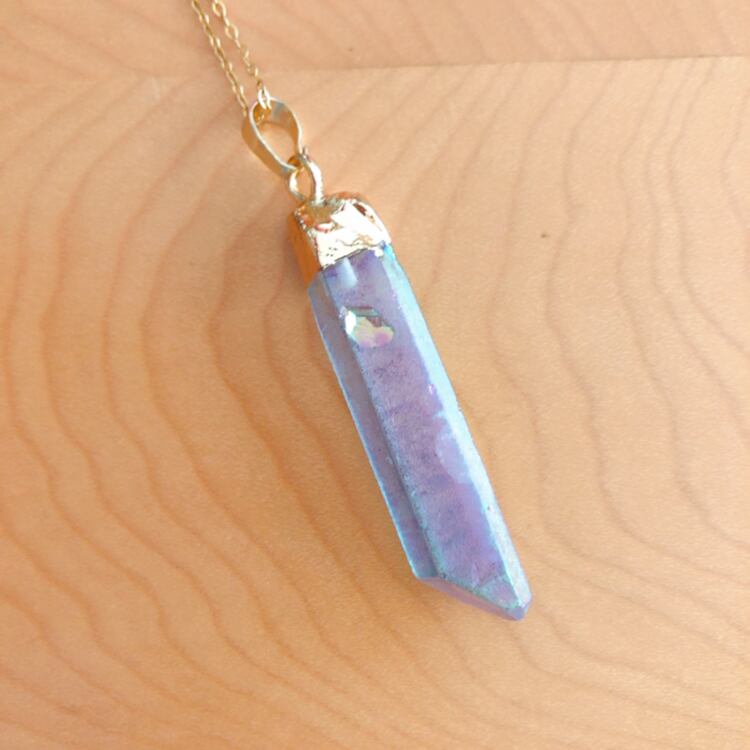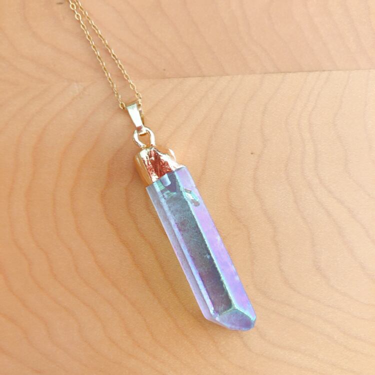 原石のままの表情に愛着がわく、オーロラを纏わせたクリスタルのペンダントトップです。