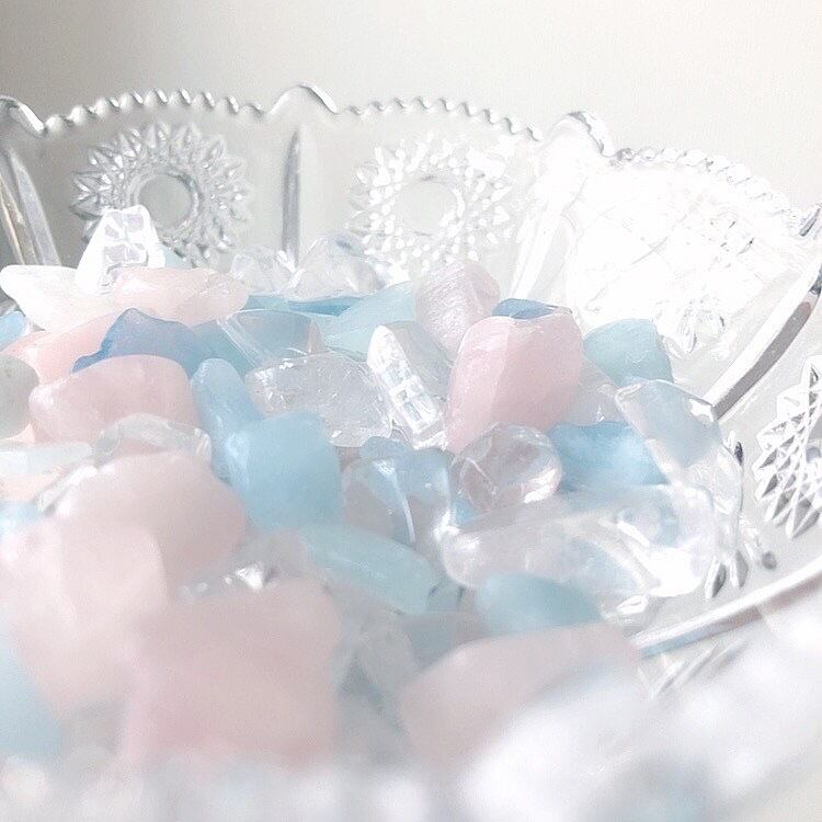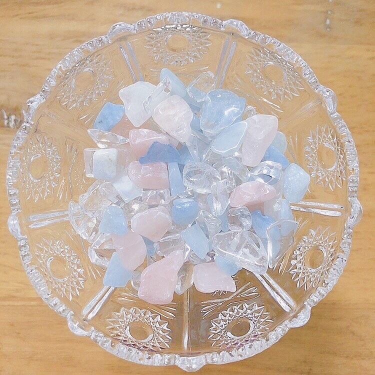 ローズクォーツ・アクアマリン・クリスタルのミックスタンブルです。