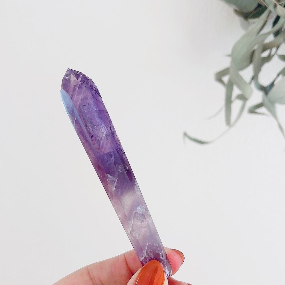 アメジストの輝きと神秘的なエネルギーを感じられる、特別なアメジストポイントワンドです。